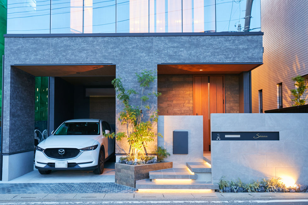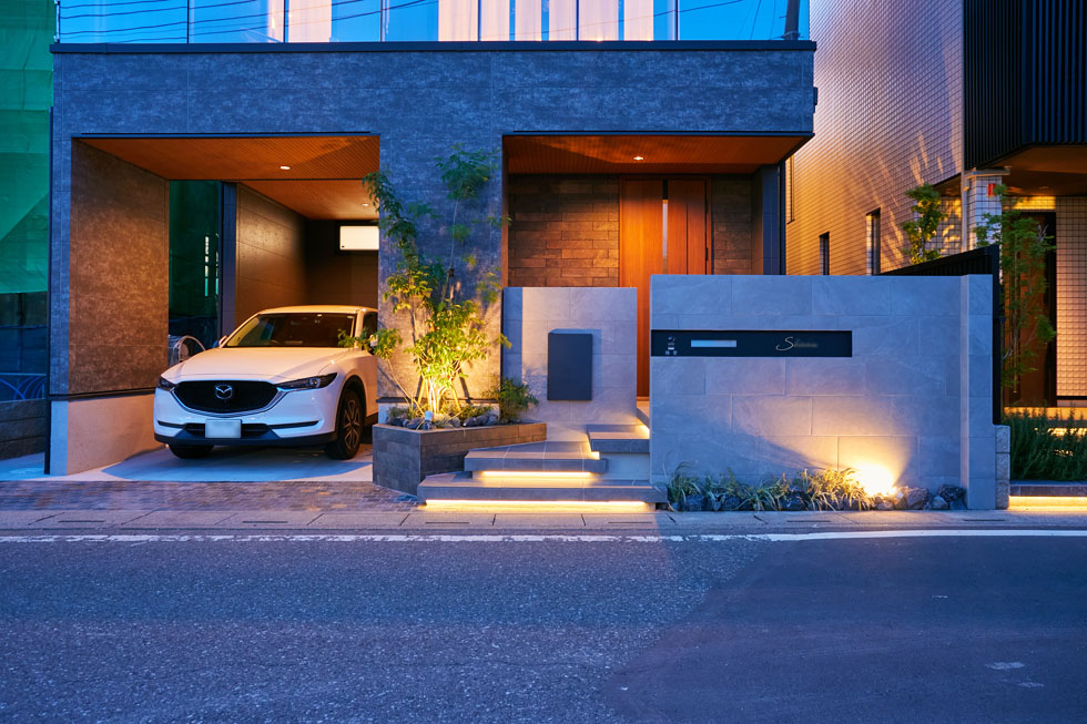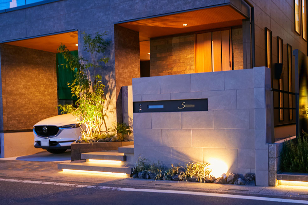 建物とのバランスや、色や素材、植栽や照明演出など、 ディティールにこだわってデザインすることで、 ワンランク上の上質な空間を演出できます。 住宅街にありながら、他とは異なる印象的な空間になりました。