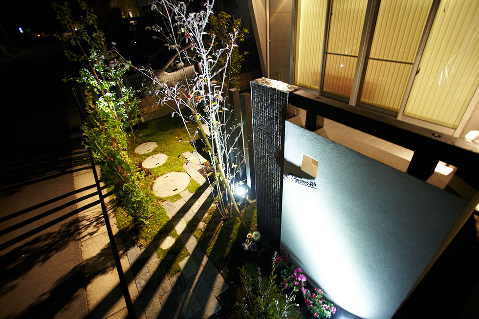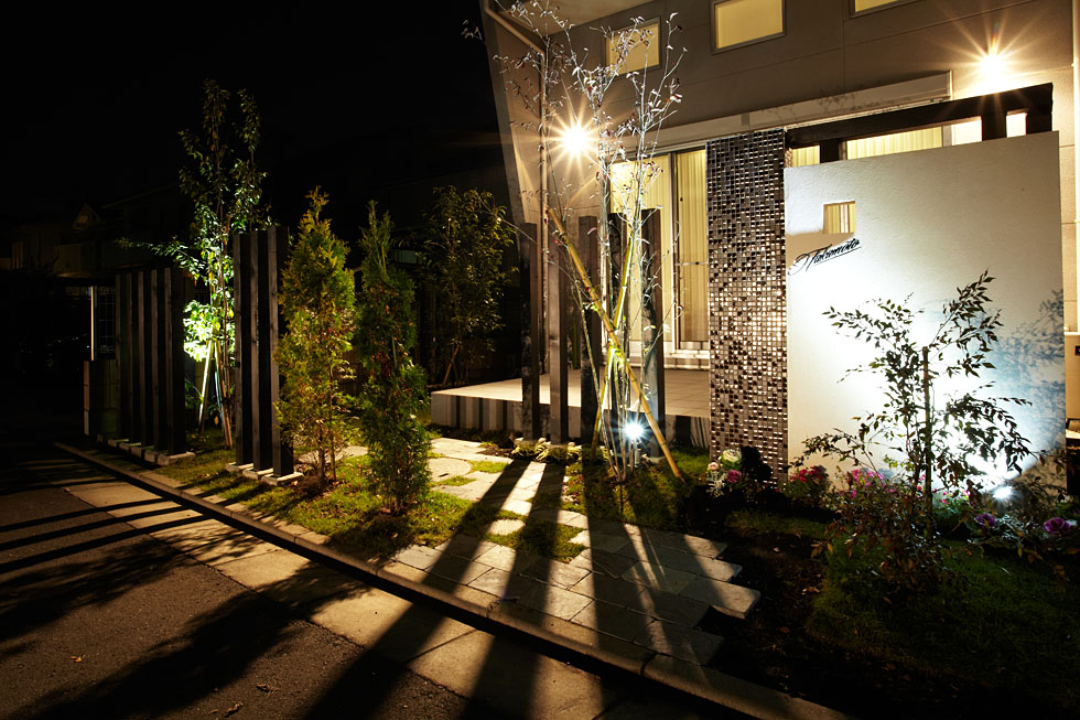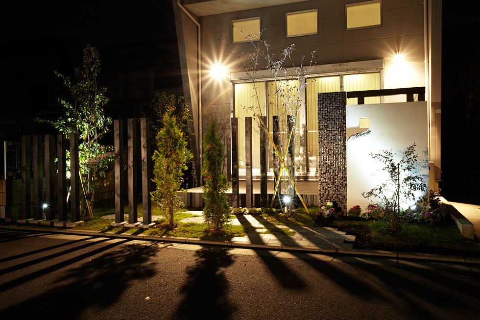 日が落ちるとお庭の植物がライトアップされ、 あたたかみのある灯りに包まれます。