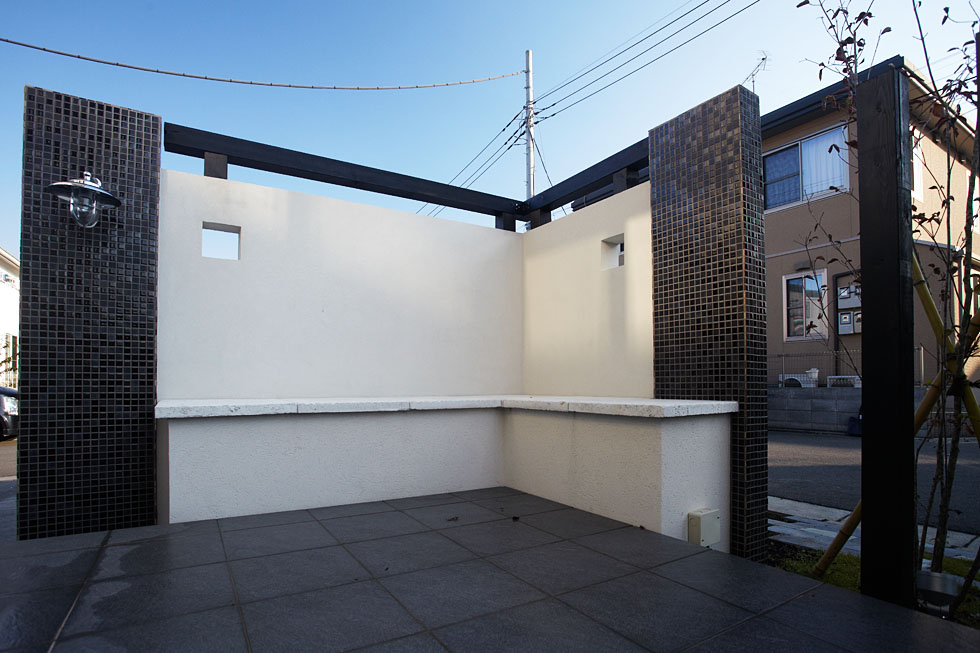 また、壁の内側にベンチをつくることで 道路側の視線を気にせず、開放感のあるテラスで 気軽にくつろぐことができます。