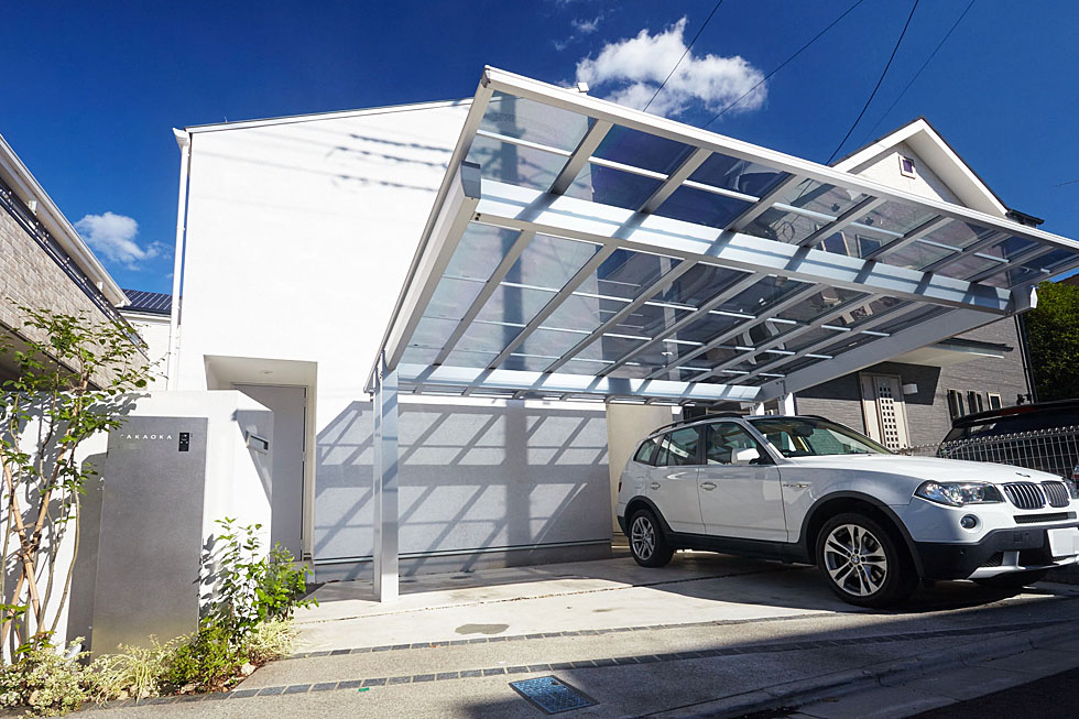 世田谷区成城にほど近い、洗練された住宅街に佇む白い外観のご自宅。