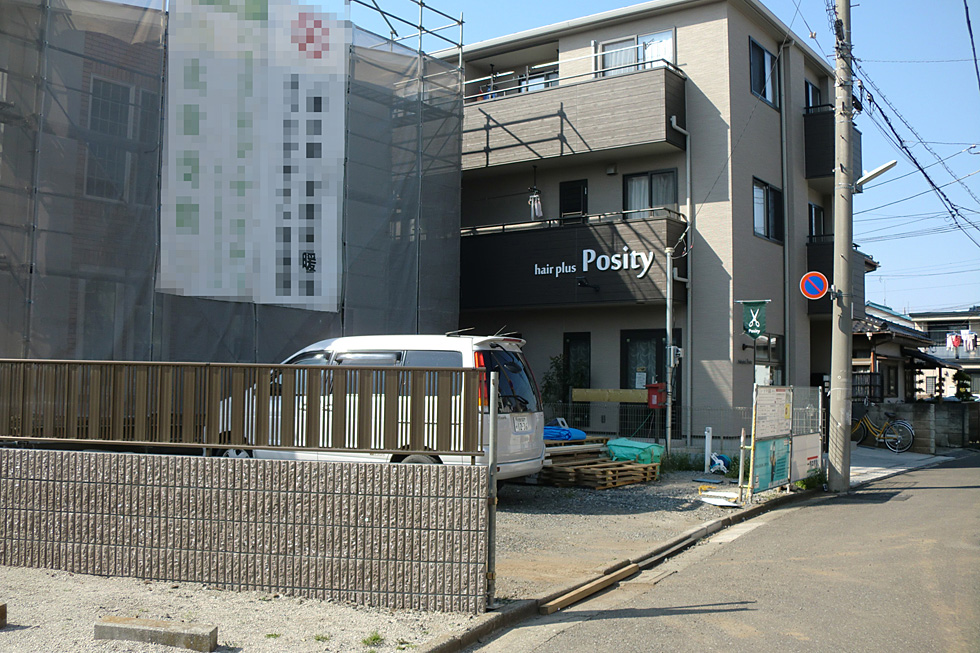 店舗と駐車場に挟まれた立地のご自宅。 車通りが多い為、お子様の道路への飛出しを心配し、敷地の全面を囲う「クローズ外構」をご希望との事。