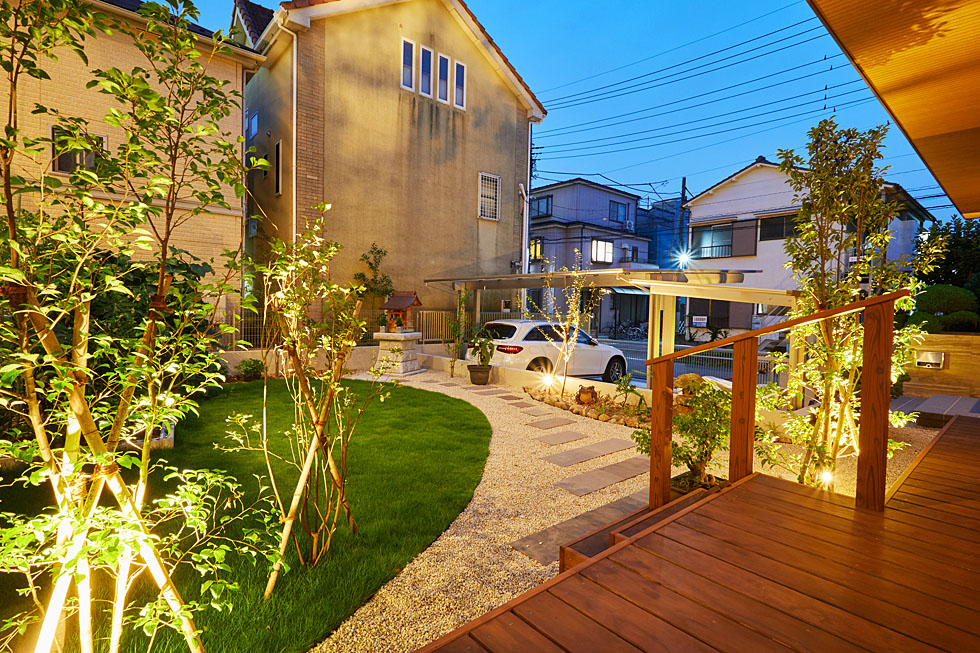 開放感とくつろぎに満ちた光あふれるフロントガーデン
