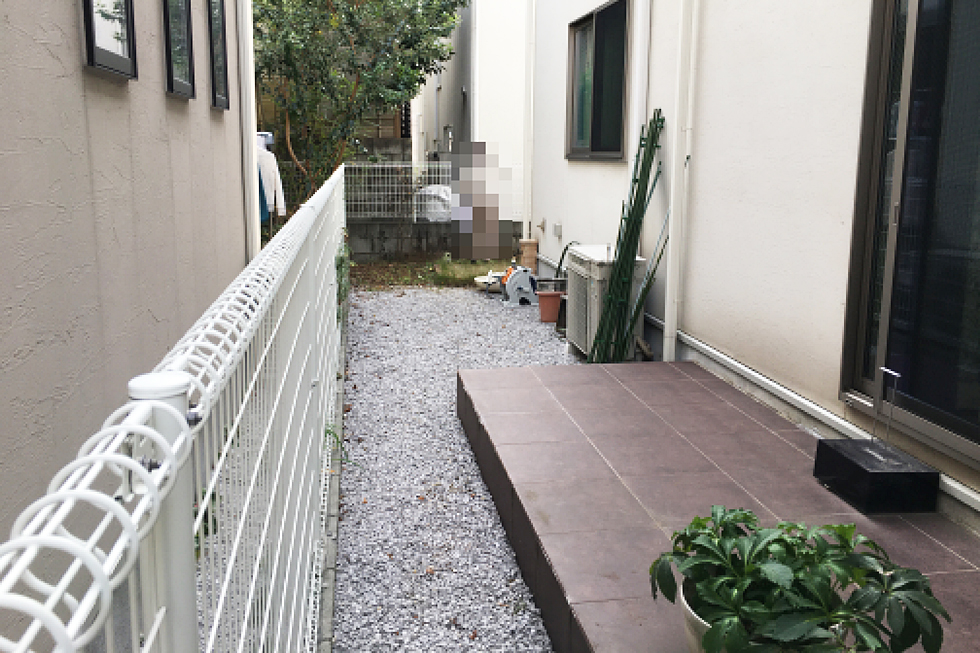 建物に沿ってL字形になったお庭は、新築時からほぼ手つかずのまま。せっかくのお庭を有効活用できるようにリフォームしたいというご相談でした。 またお隣との距離が近いこともあり、周囲の視線を気にせずくつろげるような空間にしてほしい、というご要望もありました。