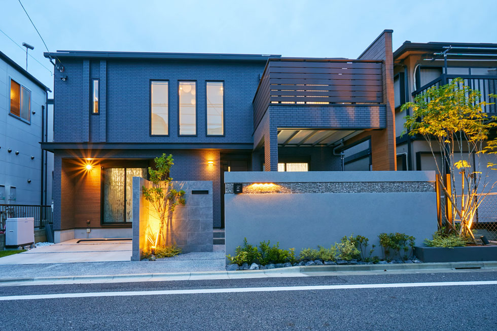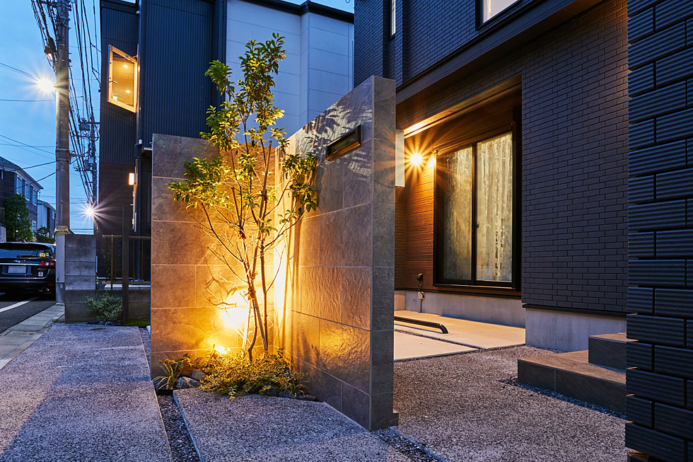 夜になると照明による演出で、印象的な空間に。 ウォールに植物の影が映り込み、昼間とは異なる表情が楽しめます。 デザイン性にも配慮しながら、 ご家族で安心してくつろげる空間になりました。